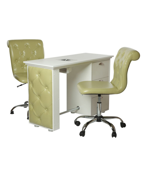 Удобный стул мастера с изогнутой спинкой и декоративными пуговицами, которые украшают внутреннюю часть спинки.